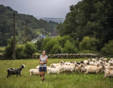 Sarah Benchimol dirige la ferme Egurbide à Esquiule, une exploitation pastorale authentique au cœur du Béarn.