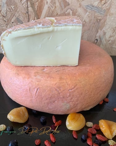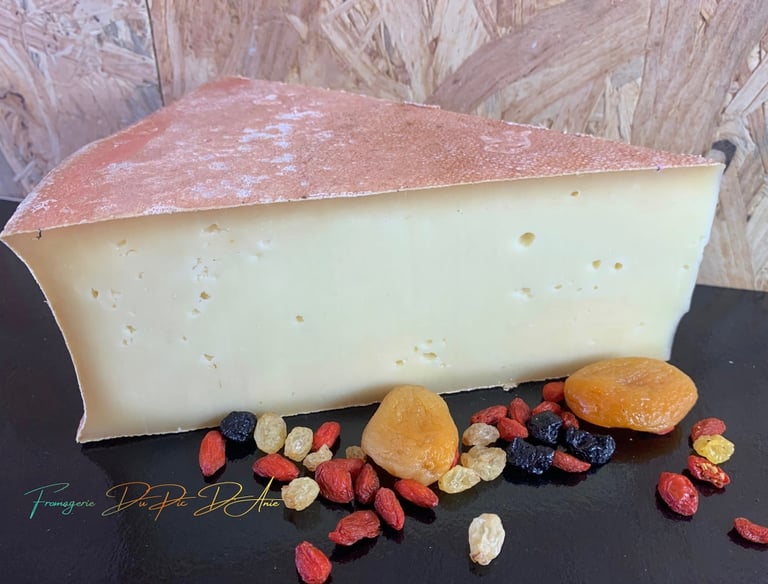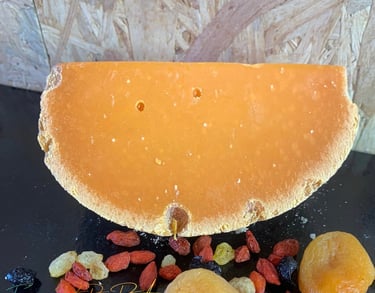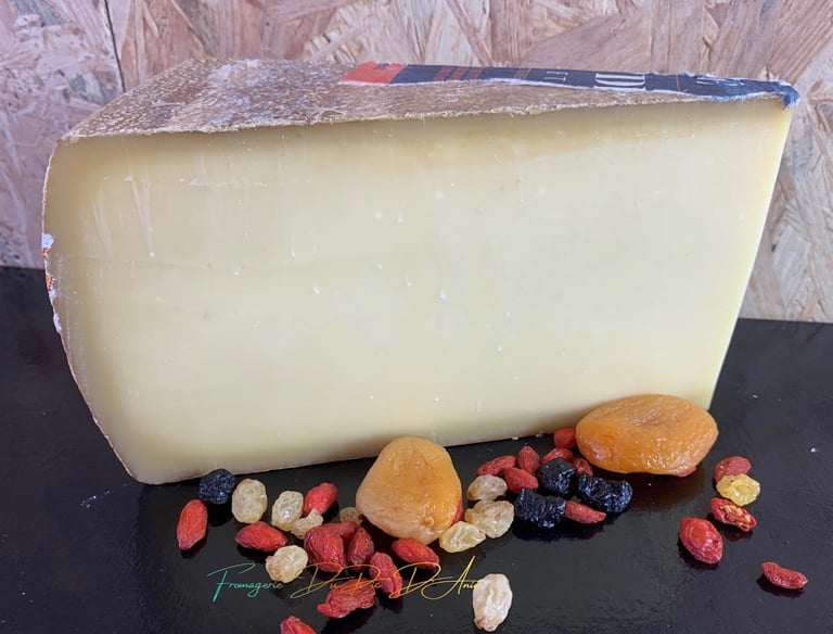 Sa pâte pressée souple révèle des arômes riches et affirmés, qui gagne en intensité à l'affinage .
