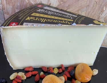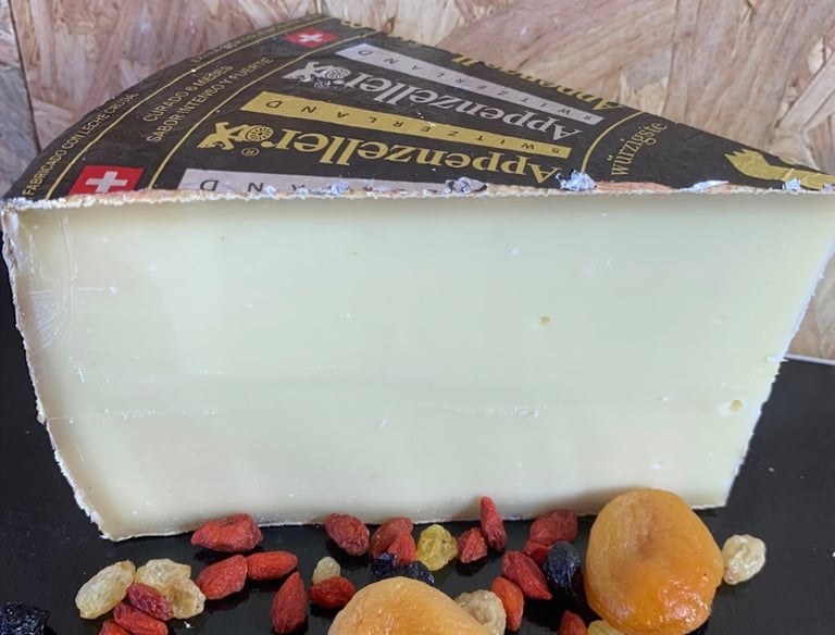 Appenzeller : fromage suisse de vache fabriqué dans les cantons d’Appenzell, au nord‑est de la Suisse. C’est une pâte pressée ferme et souple, au goût corsé, fruité et épicé grâce à un lavage à la saumure aux herbes pendant l’affinage. Il s’accorde très bien avec un vin blanc sec et aromatique type riesling, qui accompagnent sa puissance sans la dominer.