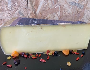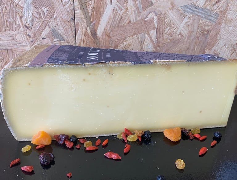 Sa pâte ferme et fondante développe des arômes riches de fruits secs, de noisette et une belle longueur en bouche. Un grand Comté de caractère, idéal pour les amateurs de saveurs intenses.