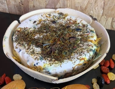 Sa forme annulaire unique et sa pâte fondante explosent d'arômes frais de piments poivrons Béarn, parfait pour un fromage pyrénéen aromatisé typique Haut-Béarn.
