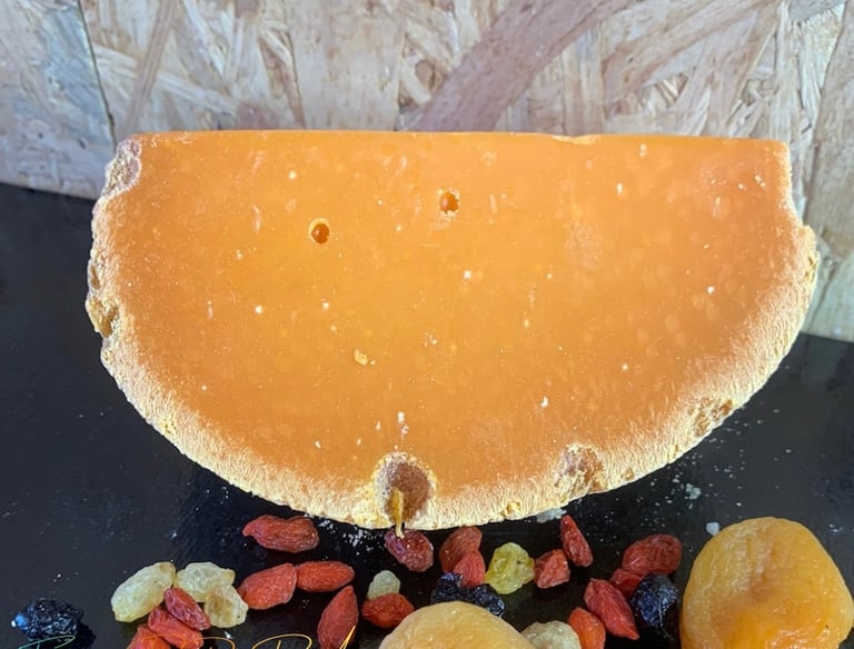 La Tomme de vache de la Ferme Casavieille, un fromage fermier d'exception au lait cru de vaches Montbéliarde.