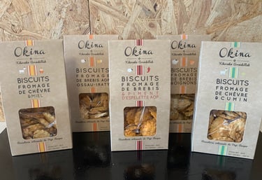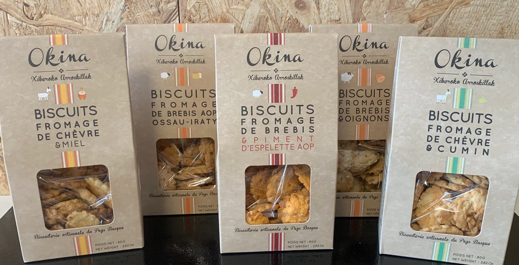 Découvrez Okina, artisan biscuitier basque qui se trouve à Idaux-Mendy, dans le Pays Basque (Soule) à proximité de Pau, expert en biscuits salés au piment d'Espelette AOP et saveurs du terroir pyrénéen.